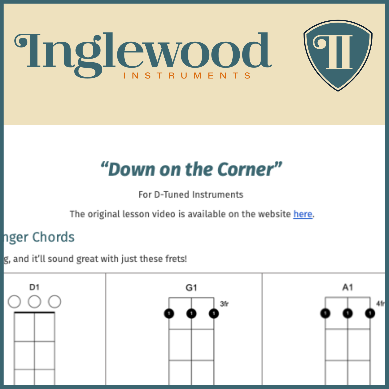 "Down on the Corner" Dulcimer TAB Chord Guide