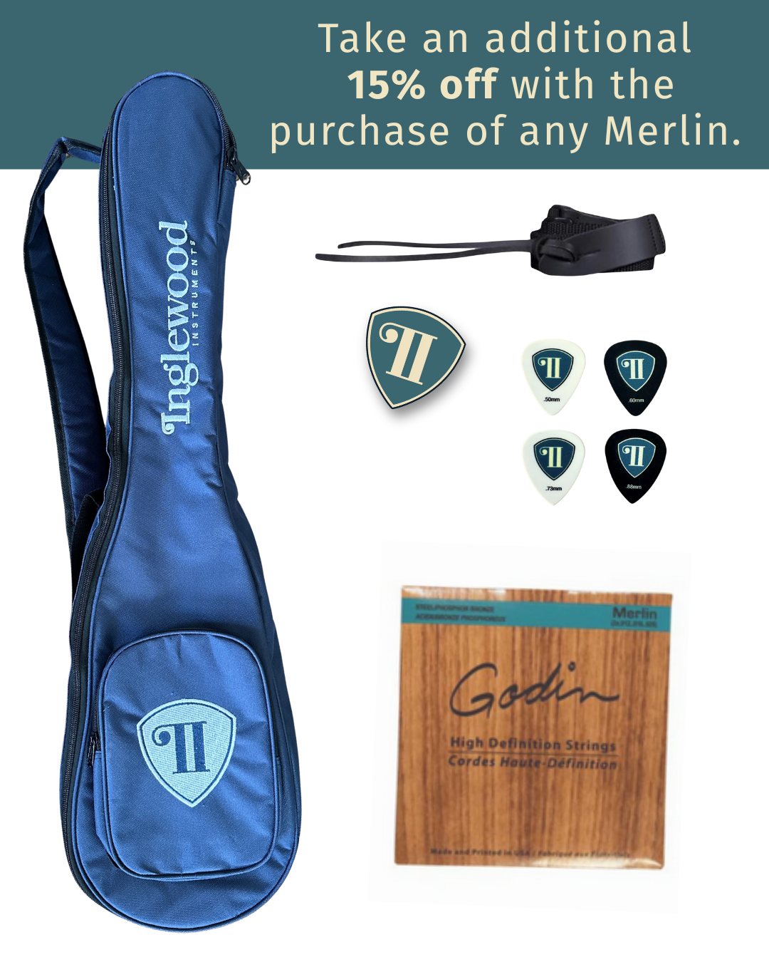 Purchase any Merlin, Cumberland River Dulcimer , or Cumberland River Guitar, and receive 15% off the bundle! Enter BUNDLE15 at checkout for your discount, and only pay $53.53!