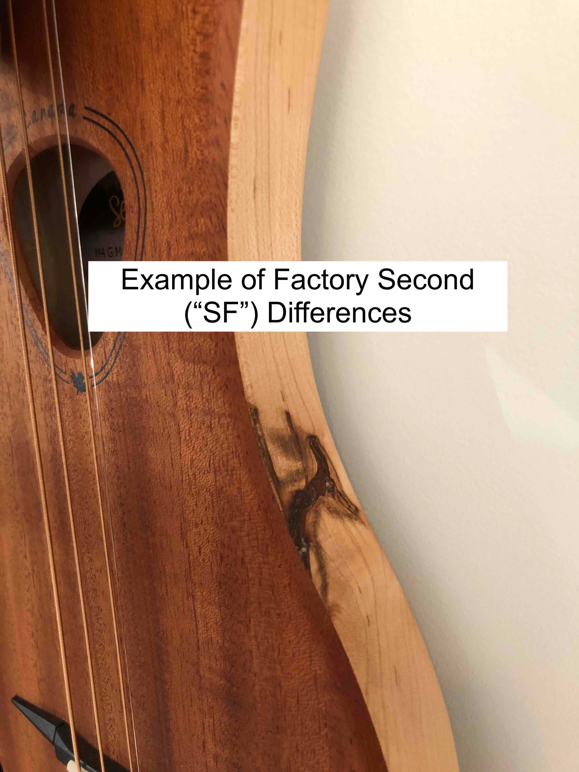 Factory Seconds ("SF") are identical to standard instruments but were deemed by the quality assurance folks at Seagull to be of lower grade wood stock. Generally, that means there's one place on the instrument where the wood has a knot, odd grain pattern, or atypical coloration (see example pictures). We are not allowed to sell SF instruments at market rate, so you get a high-quality instrument for a lower price point! If you have questions or want to check current stock, email us at hey@heyinglewood.com.
